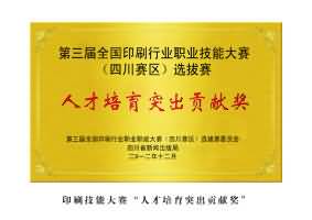 2012年獲得第三屆全國印刷行業(yè)職業(yè)職能大賽(四川賽區(qū))選拔賽人才培育突出貢獻獎